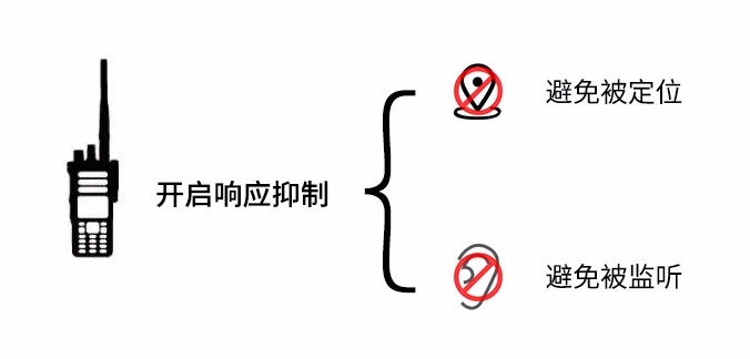 當(dāng)對(duì)講機(jī)用戶啟動(dòng)響應(yīng)抑制功能后,對(duì)講機(jī)只允許用戶使用語音呼叫、CSBK呼叫和數(shù)據(jù)呼叫(用于短信、工作通知單和遙測(cè)等),而所有其他類型的傳輸,包括所有ACK,ARS、GPS等,包括第三方請(qǐng)求的傳輸,都會(huì)被阻止,從而避免相關(guān)語音或數(shù)據(jù)被第三方人員接收。