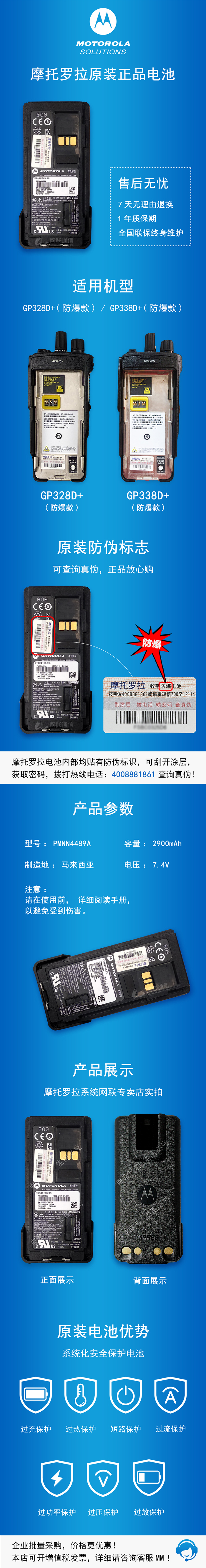 PMNN4489 GP328D+/GP338D+/P86系列 防爆電池 2900mAh
